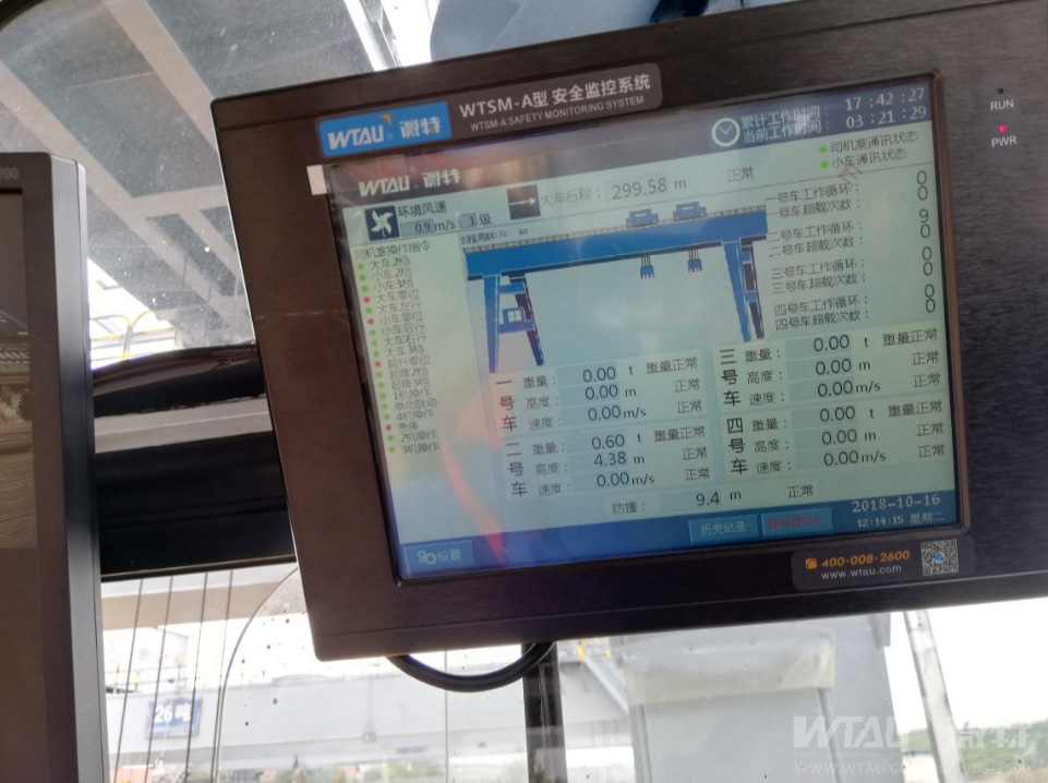 成都铁路局石板滩焊轨基地龙门吊配装微特技术有限公司的WTSM-A型安全监控系统。