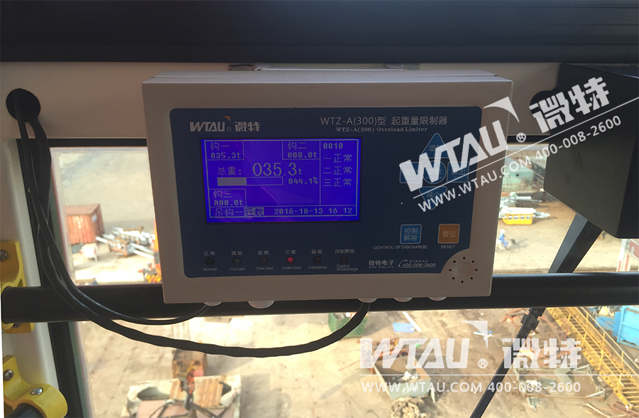 微特电子配备的WTZ-A300型超载限制器,该型号超载限制器拥有实时监控、动态显示、声光报警、数据备份、断电记忆以及密码?;さ裙δ?,且仪表本身设计具有抗干扰性强,操行界面友好,通用性强等优点。