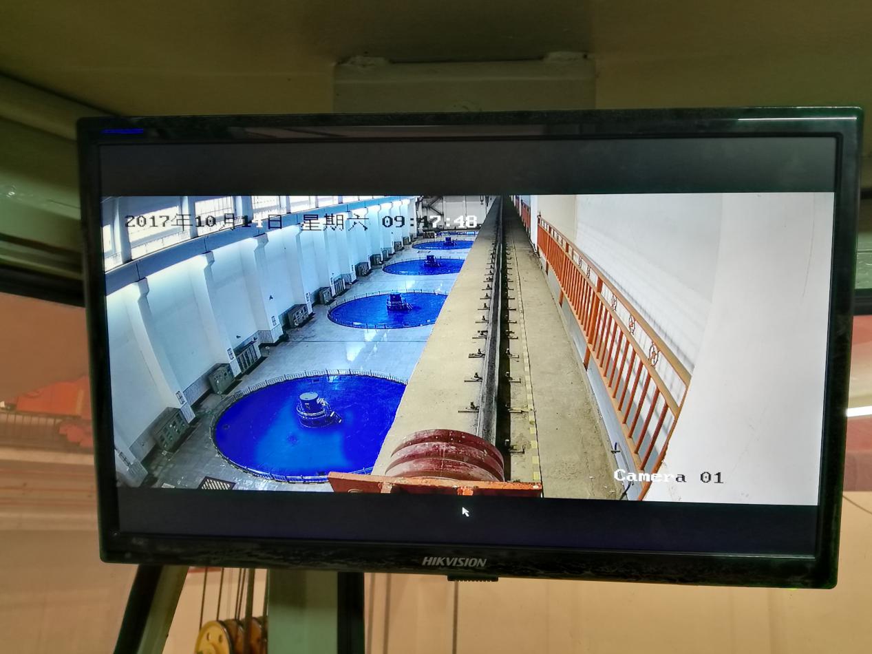 图为小峡电站厂房1号桥机监视系统实时监控图像