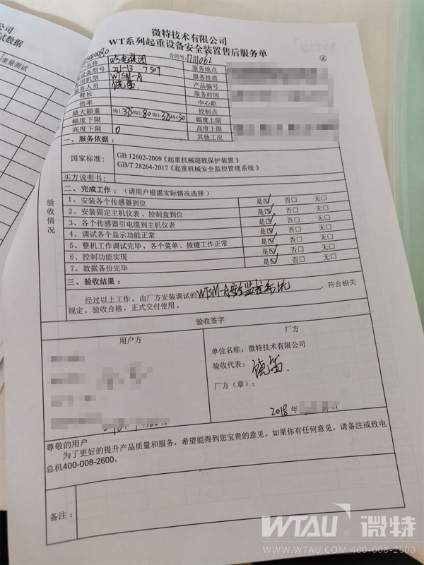 微特技术有限公司为此次项目提供的WTSM-A型起重机安全监控管理系统是严格安装《GB/T 28264-2017起重机械安全监控管理系统》标准设计和生产的,为设备的安全运行提供了可靠的保障。