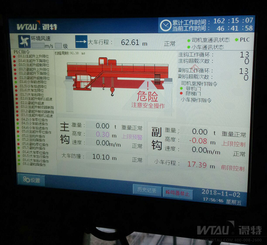 攀钢生产设备众多,其中钛业炼厂起重机在生产中的角色不容小觑,该厂的数台冶金桥式起重机为生产主力设备。微特参与此次冶金吊监控系统的改造,配装的WTSM-A型冶金吊监控系统大大提升了该厂的安全生产效率,为安全生产提供有力保障。
