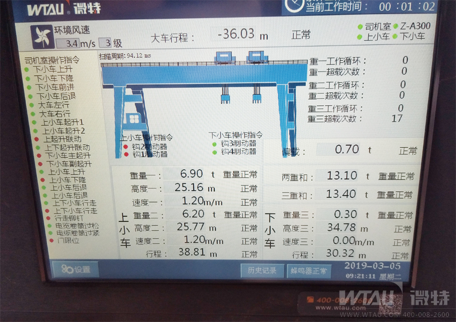 此次项目中包含数台300吨造船龙门监控系统的配装,为了安全生产,曾因当地特检院验收标准非常严格,使用方一度担心设备过检问题。经过多次沟通和现场调研,他们最终选择了微特的起重机安全监控系统为他们的设备保驾护航。