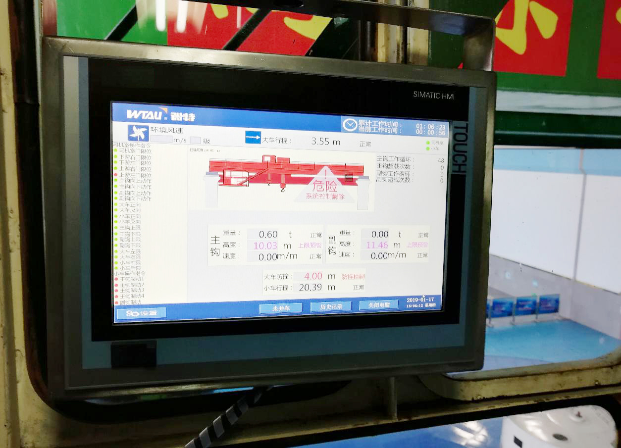 其桥门机使用频率很高,所以电厂对桥门机的任何改造和增设项目都很重视,对于质量要求极为严苛。在严格的施工制度下,微特细致的推进安装调试工作。厂房两台桥机是最先完成安全监控系统安装调试的,在经过了几个月的使用后,各项参数显示正确,系统性能良好。