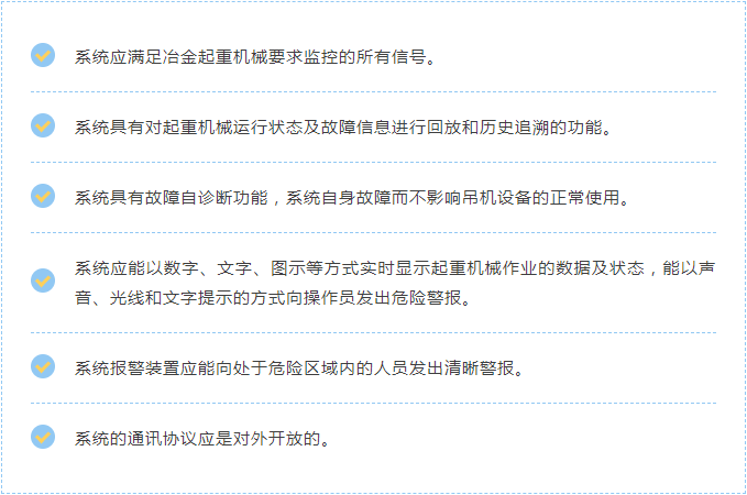 同时,系统根据最新国家标准《起重机械 安全监控管理系统》GB/T 28264-2017实施,需满足如下基本功能要求。