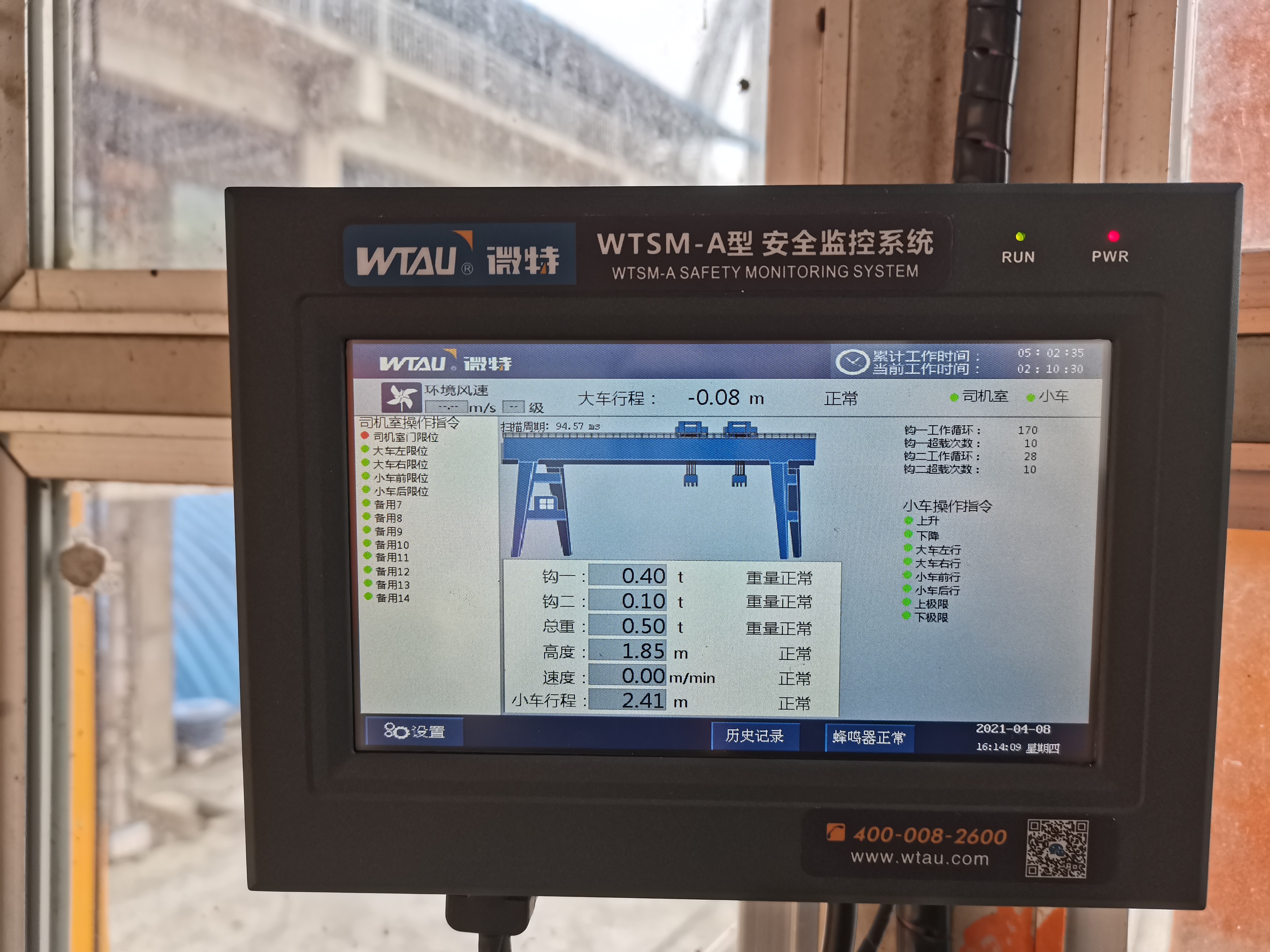 WTSM-A安全监控系统为微特生产的起重机安全保护装置,主要用于起重机运行状态的记录和报警,禁止起重机在监测到的危险状态下运行。本产品具备对起重机的安全生产进行实时监控,危险预警并禁止向危险方向操作的功能,能有效提升起重机使用过程中的安全性。