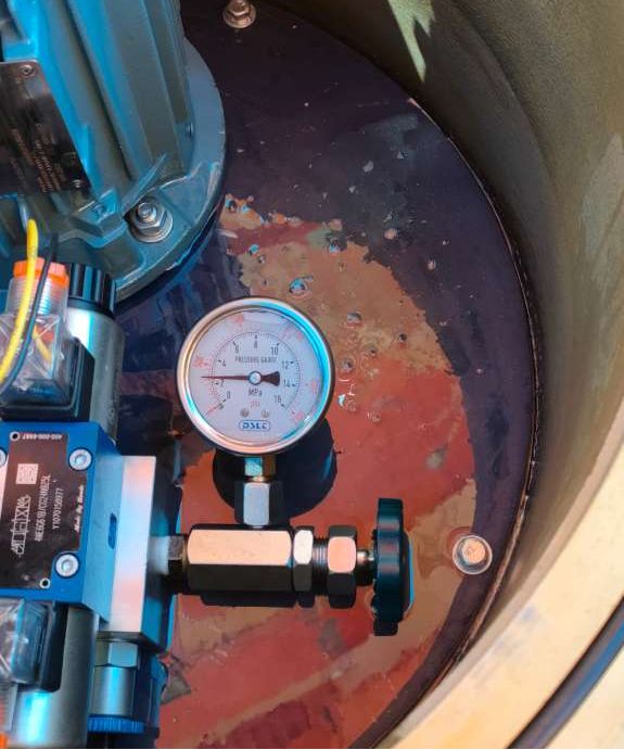 液压泵站油箱采用10mm壁厚碳钢材质,按 7MPa压力设计制作。对油缸密封材料进行改进采用进口密封圈、双层密封。油箱设置加油孔、放油孔、观察孔。