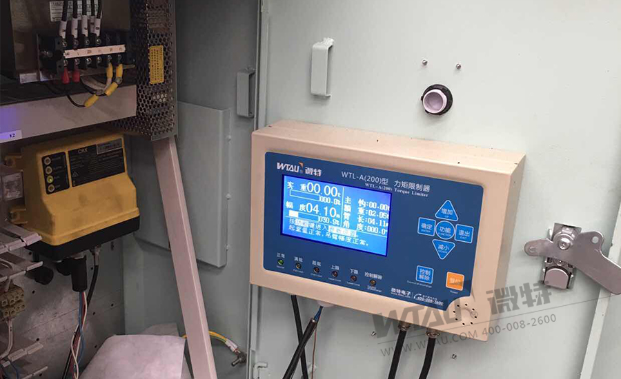 该起重机采用全液压驱动,具有运转平稳,结构紧凑,电液控制与手动控制相结合,使用操作方便,使用安全等特点.是船舶较理想的起重设备。吊机上的力矩?;ぷ爸糜梢瞬形⑻氐缱由璞赣邢拊鹑喂九涮咨?,选用微特TL-A200型力矩限制器,可实时监控吊车当前重量,幅度,角度,长度,额重等工况参数。