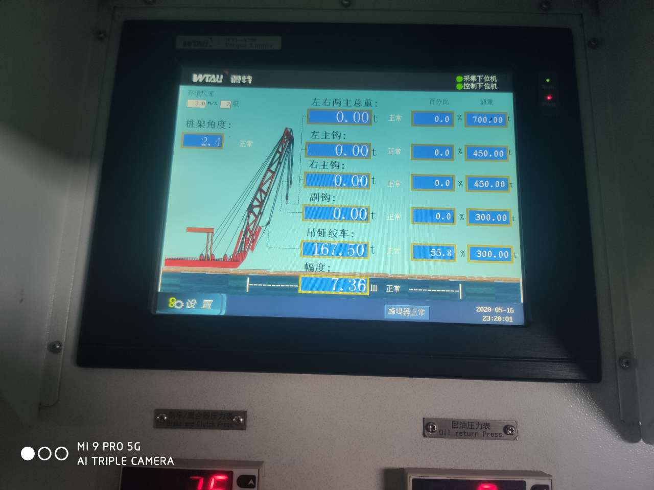 ▲应用于三航桩20的WTL-A700力矩限制器仪表