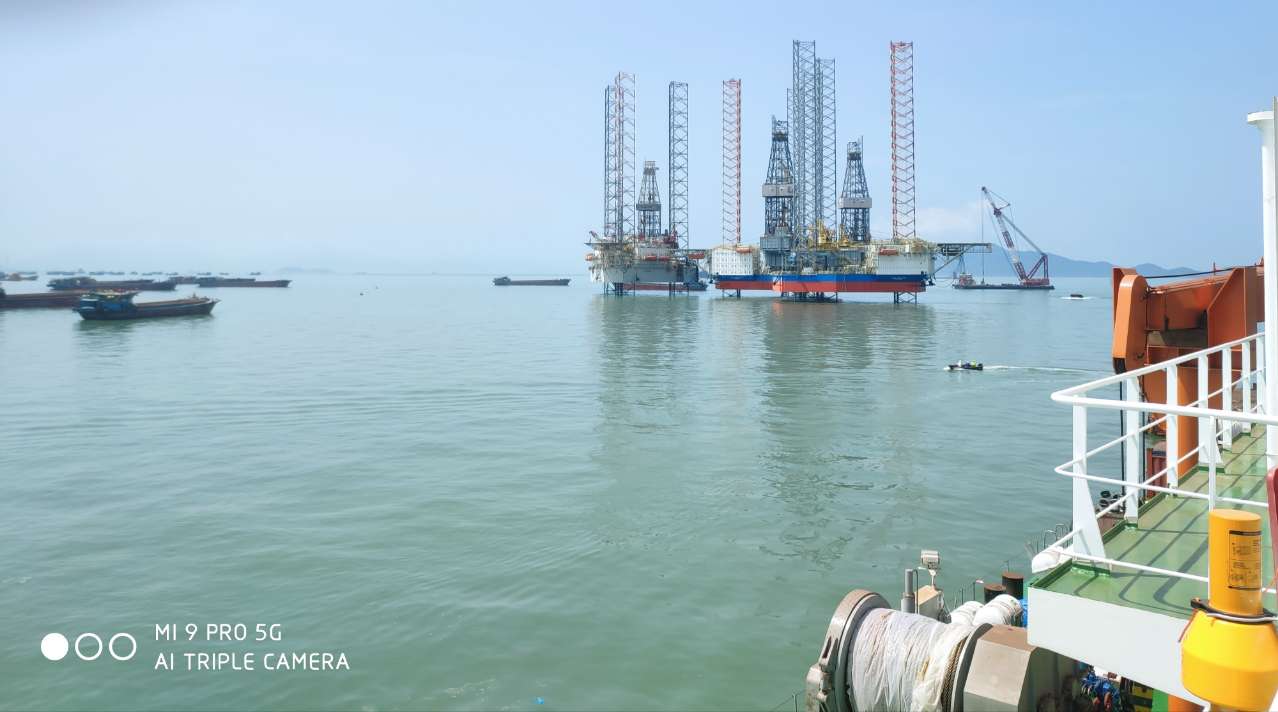 ▲三航桩20打桩船上远眺海景