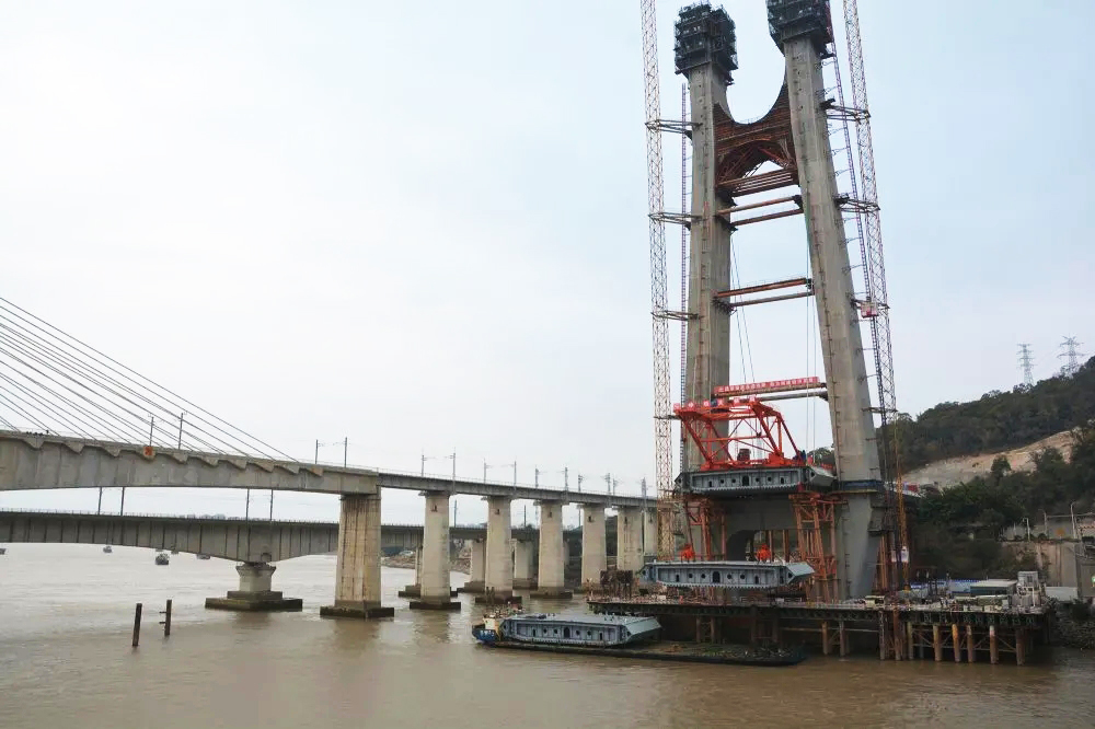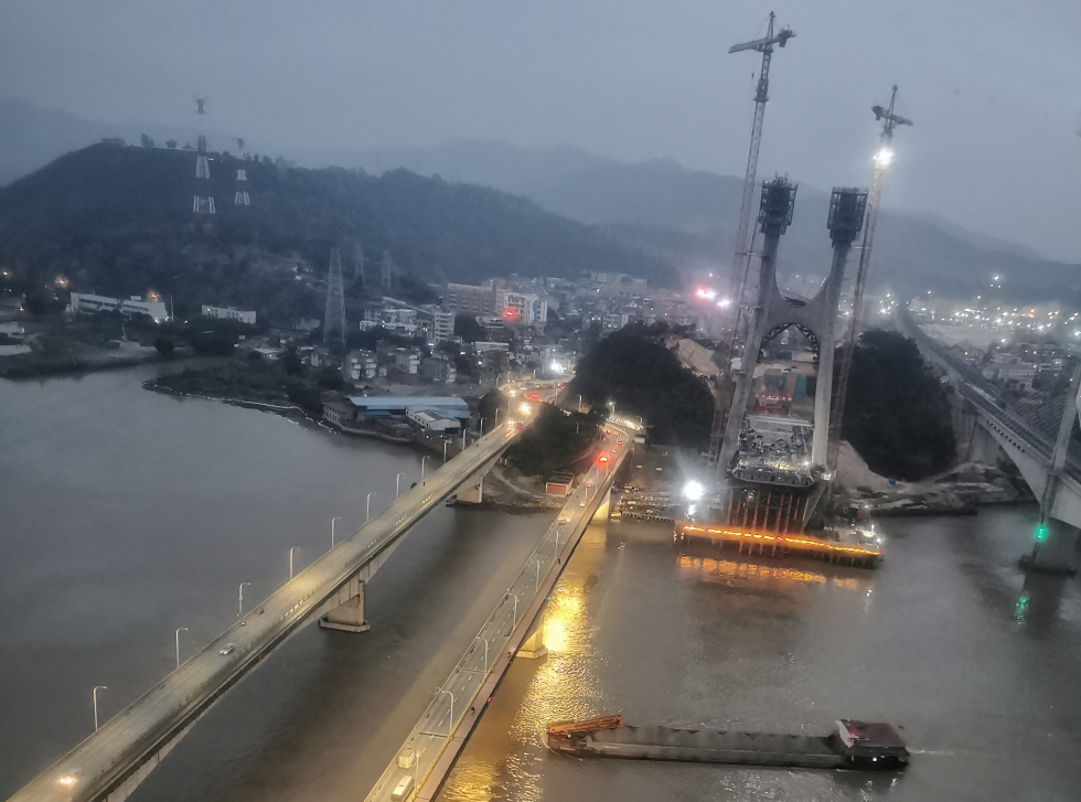 其中乌龙江特大桥位于福州仓山区和闽侯县境内,其下游约220米就是324国道乌龙江公路桥,全长868.188米,跨324国道和乌龙江。本桥为双线桥,全长868.178米,共计14个墩台,总投资约1.33亿元。该桥采用双线矩形空心桥台,主跨为(144+288+144)米部分斜拉桥,为世界范围内同类桥型最大跨度。