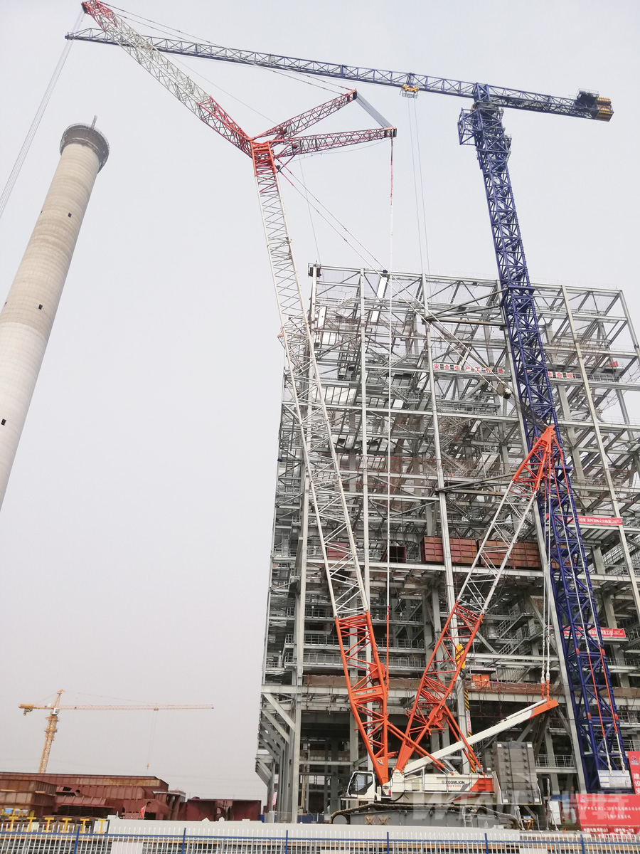 山东枣庄陈田矿电站主体结构正在紧张建设中,钢结构是其主要组成部分,其中大型箱板重达上百吨,而图中大型600T履带吊起到关键作用。最大600t的起重量,100多米的最大起升高度,足以看出这是个大家伙。