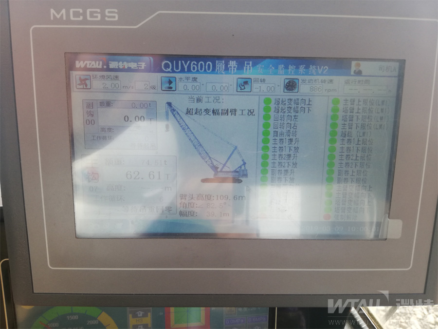 这台大家伙正是安装了微特的安全监控系统,监控系统屏幕上有多个工况自动切换,多种数据全面采集。
