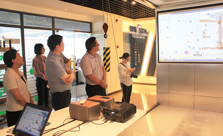 而后肖主任一行来到由微特投建的智能吊装设备研发检测中心,聂总一一向大家介绍了检测中心内的各种实验检测设备,在阐述这些设备的功能和作用的同时特别讲到微特电子作为一家保障起重机安全的公司,自身的产品品质要求非常高,而这些实验设备就是其品质的有力保障。