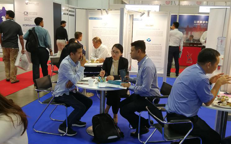 展会期间,外贸发展局在展位上为中国参展企业举办与外国买家的对接活动。下图为我司与外商的对接。