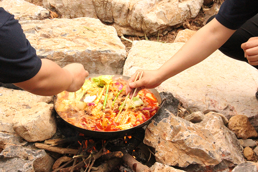 下午十多公里的山路要走,即使是野炊各队安排的伙食也是非常的丰富。