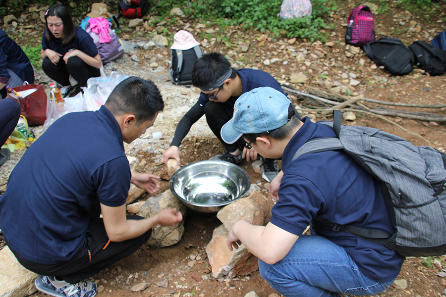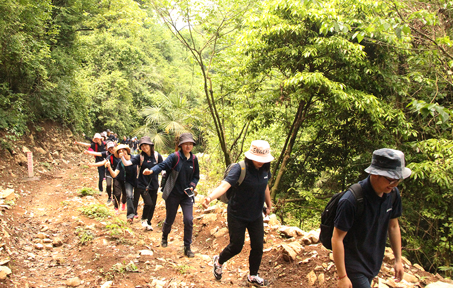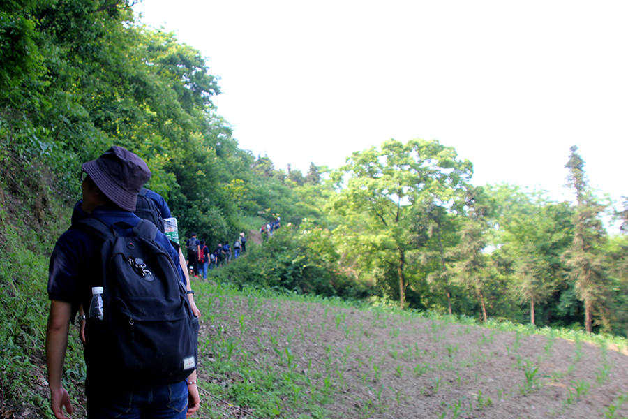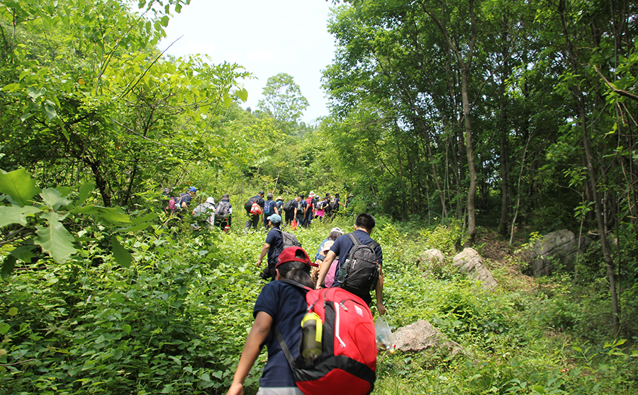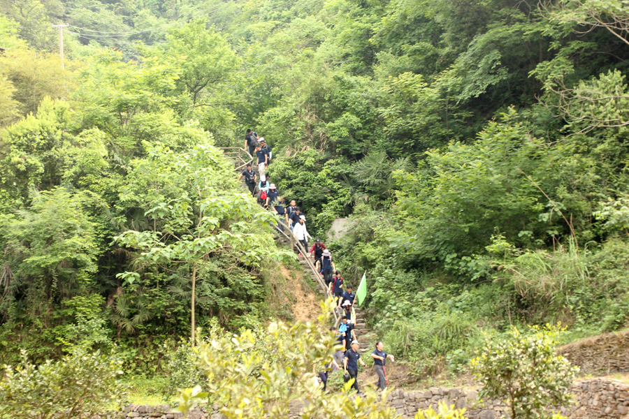 野炊结束各队稍作休整即开始出发,走在山涧的小路上,欢乐的队伍打破了安静的山林。