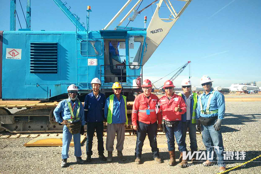 在越南,微特工程师奔赴现场,当地人员只会越南话,语言不通就借助肢体语言,耐心和客户沟通,最终为当地某国企大吨位履带吊成功安装WTL-A700安全保护装置,不得不说,微特的每一个成功都来之不易。