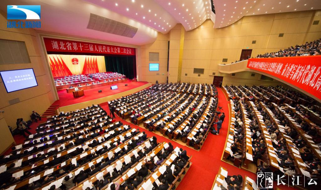 ▲图片:湖北省第十三届人民代表大会第二次会议在武昌洪山礼堂隆重开幕,图片来源于长江云