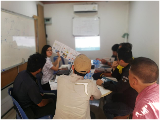 ▲微特海外业务经理(右)在泰方工作人员协助下做售前技术信息收集