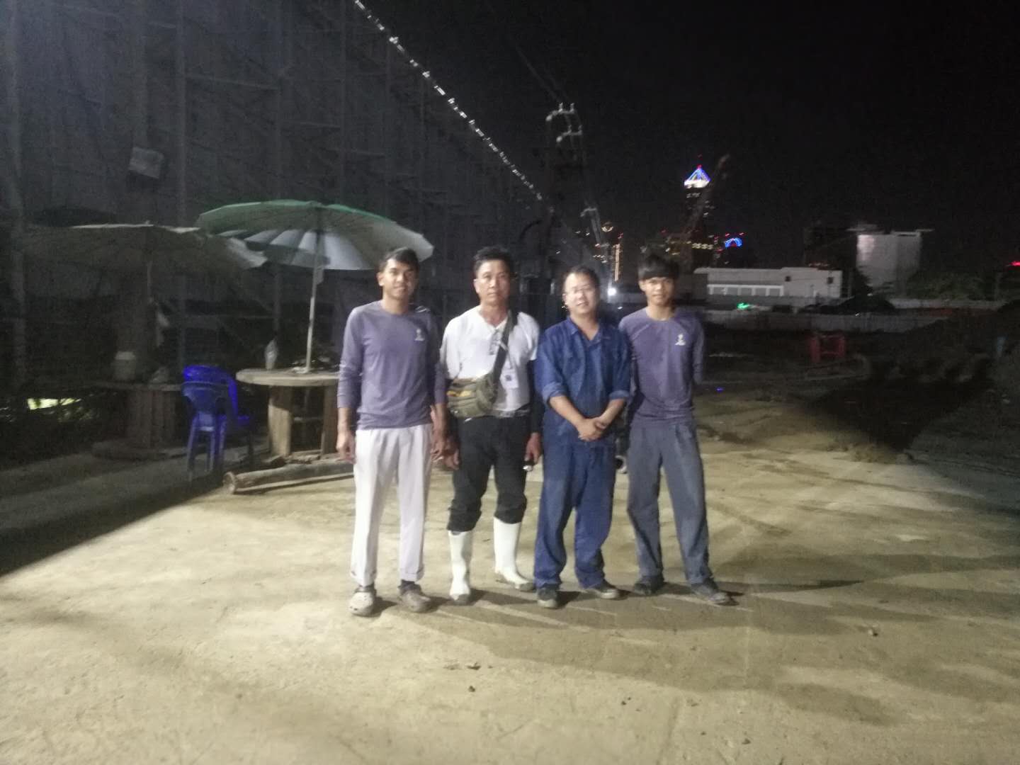▲夜晚,微特工程师(右二)与泰方接送人员顺利抵达施工现场