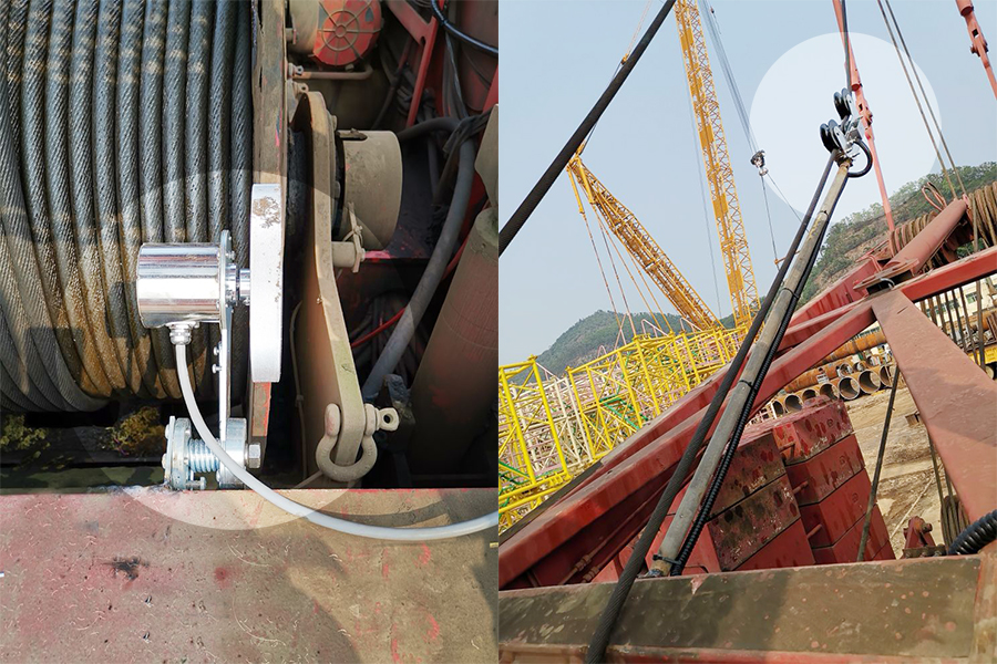▲现场安装起升高度编码器及三滑轮重量传感器