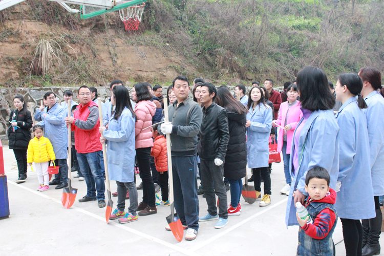 上午8:30,微特电子员工及员工家属在后山篮球场集合,分发植树工具及小树苗。