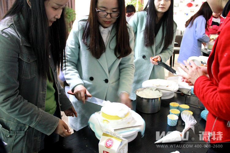 在老师的指导下大家共同努力,亲手做出了精美的蛋糕。看着这些甜蜜的作品,众女神还特邀请男神共同品尝,让男神们在这个特殊的“女人节”,不嫉妒、不抱怨,品尝甜蜜!