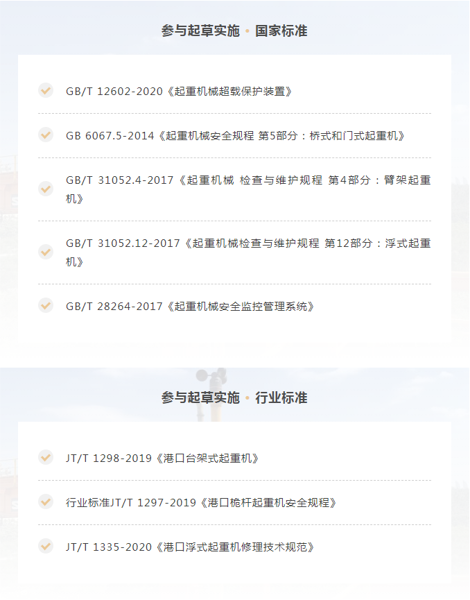 2019年9月微特当选全国起重机标委会臂架分会委员会委员。2020年10月1日由微特牵头起草的国家标准GB/T 12602-2020《起重机械超载保护装置》正式实施,这也是微特参与起草并发布实施的第5项国家标准。截止到目前微特先后参与了20多项国家标准的起草,其中5项国家标准及3项行业标准已颁布实施。