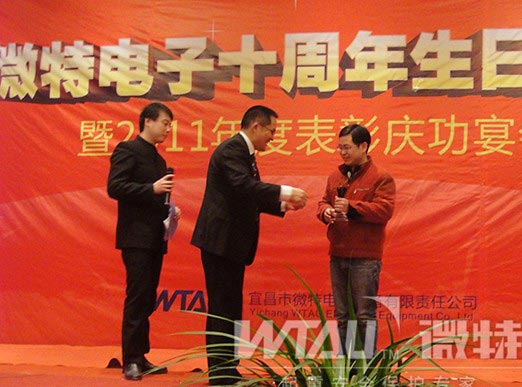 2011年度先进表彰,明星闪耀。现生产部主管:罗毅,荣获年度最灿烂的大奖“微特之星”称号?。ㄍ嘉浣毕殖。?/P>